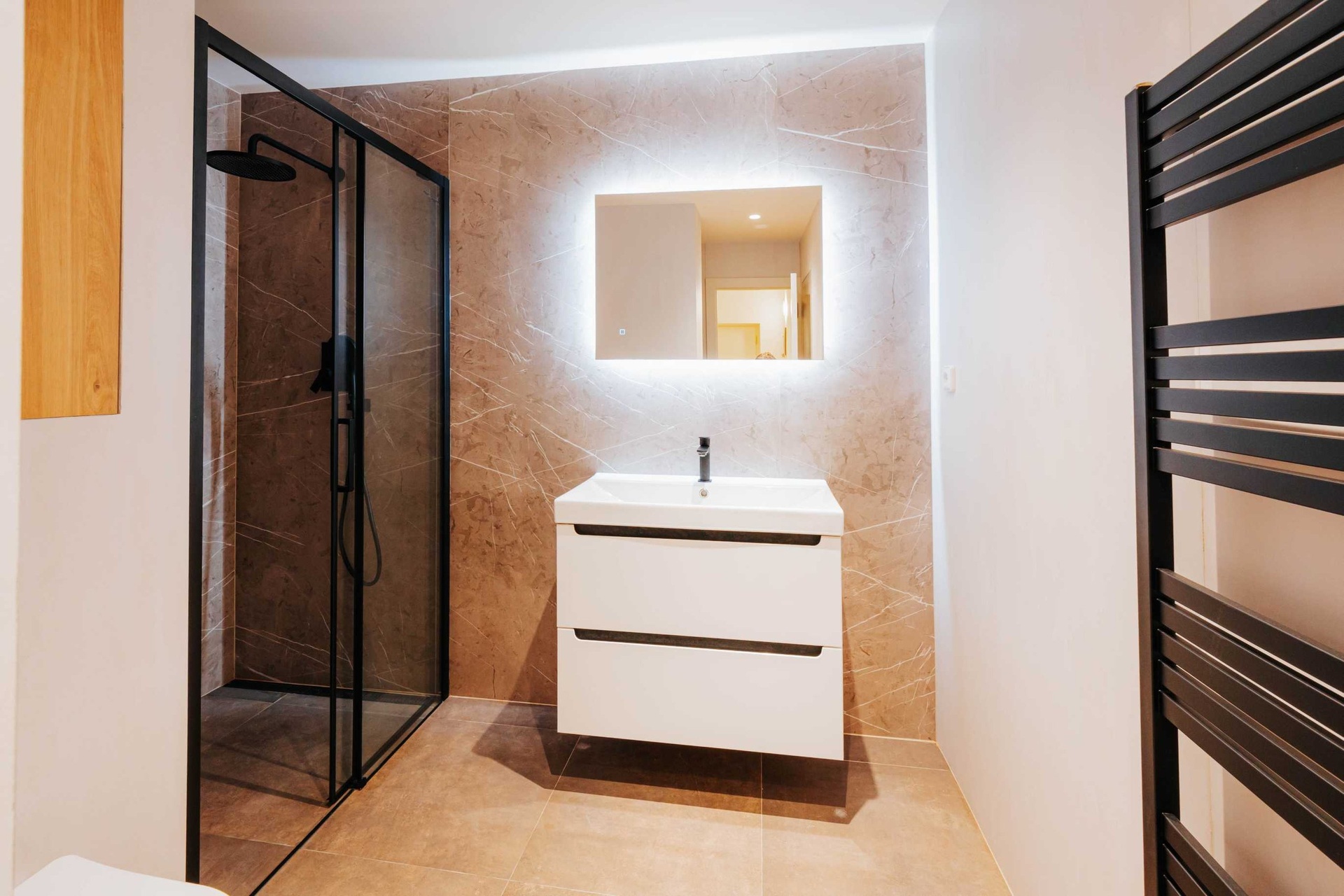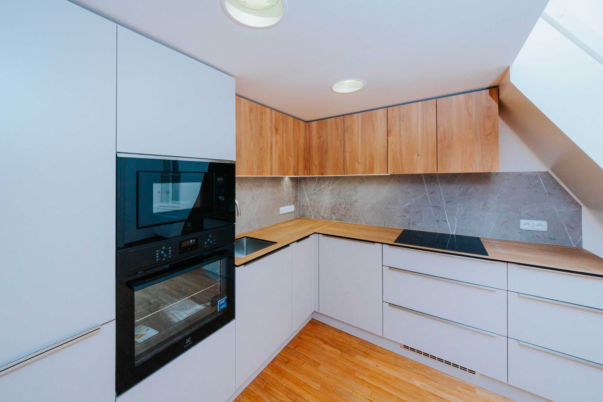 V interiéru se podařilo skloubit moderní vybavení s charakterem historického domu – vysoké stropy, špaletová okna a původní prvky dodávají prostorům jedinečný šarm. Kuchyňská linka je osazena vestavnými spotřebiči a koupelna je řešena v nadčasovém designu. K jednotce náleží sklep. Parkovací stání v zakladači na dvoře je možné dokoupit za extra poplatek. Rozložení nábytku je pouze ilustrativní, byt se nabízí nezařízený.