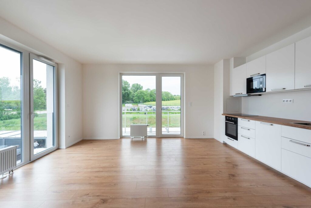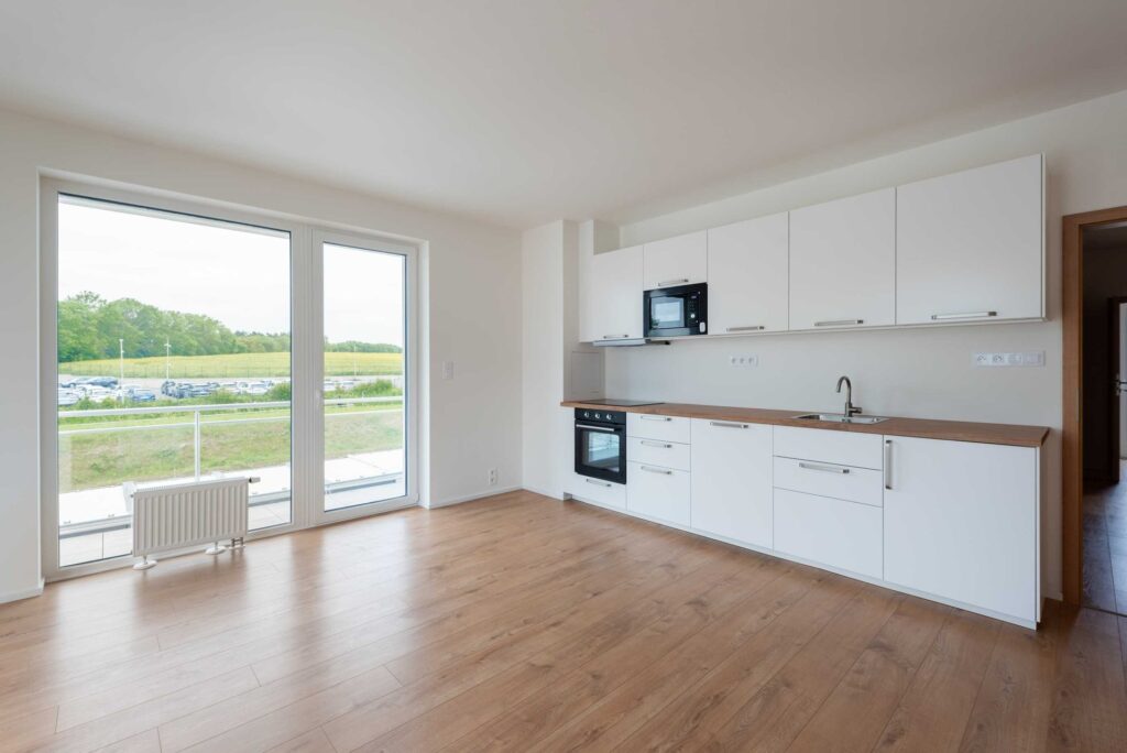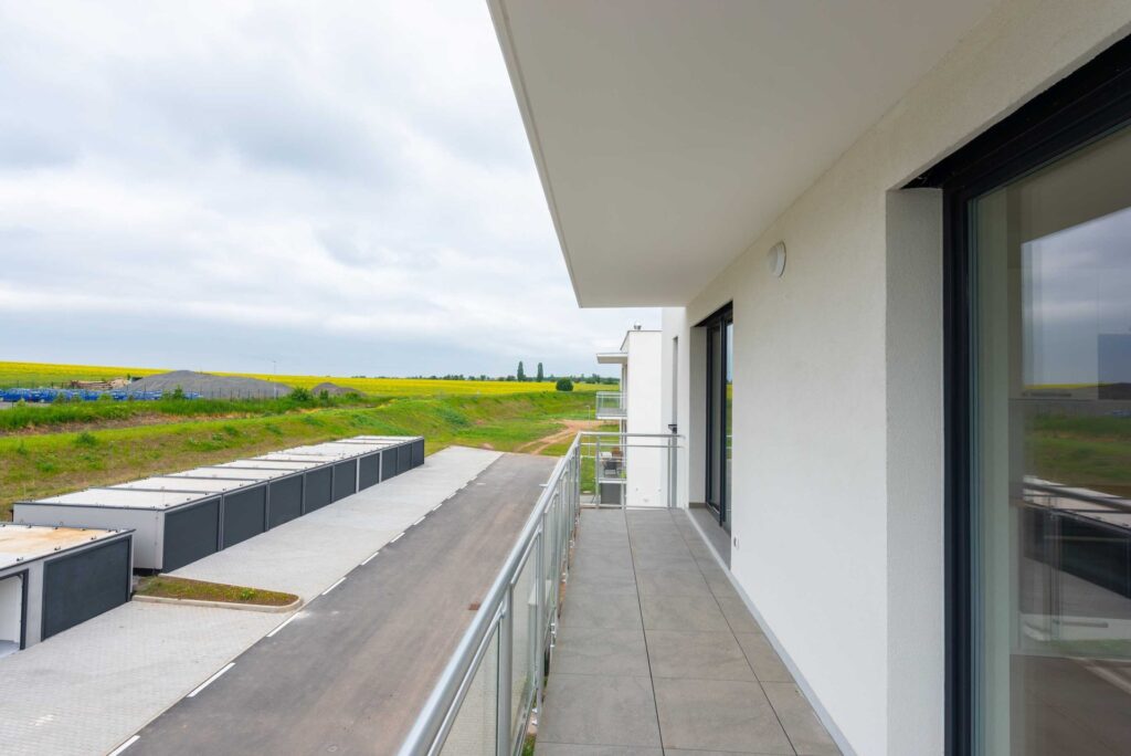 Tento nezařízený byt o velikosti 62 m2 se skládá ze vstupní chodby, obývacího pokoje s vybaveným kuchyňským koutem (indukční deska, trouba, mikrovlnná trouba, myčka nádobí), koupelny s vanou a toaletou a ložnice. K bytu náleží také balkón (11 m2), který je orientovaný na jih a je přístupný z ložnice i z obývacího pokoje. Jednotka se nachází v komorní novostavbě zkolaudované v roce 2025, s pouhými 9 jednotkami.